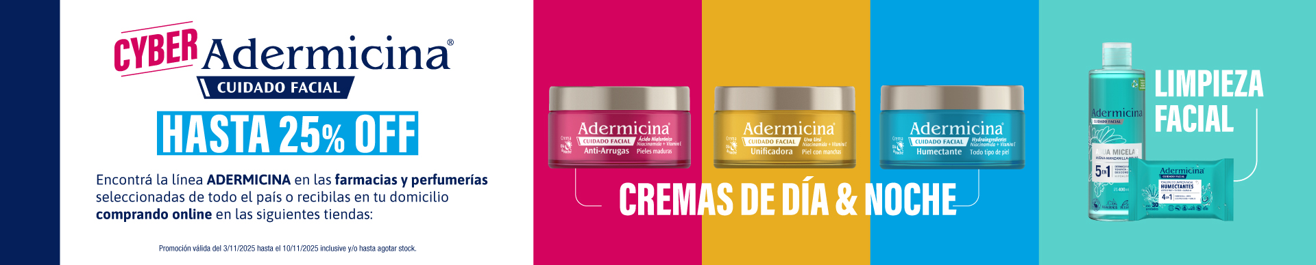 Encontrá la línea ADERMICINA en las farmacias y perfumerías de todo el país o recibilas en tu domicilio comprando online en las siguientes tiendas: